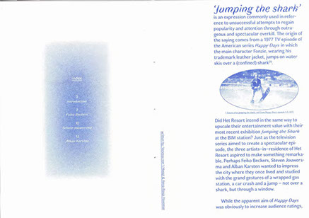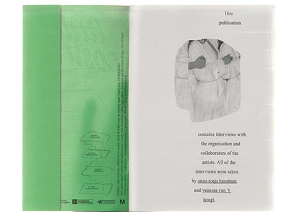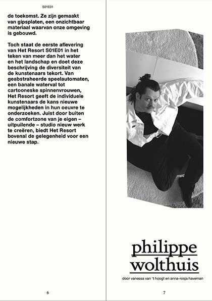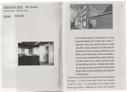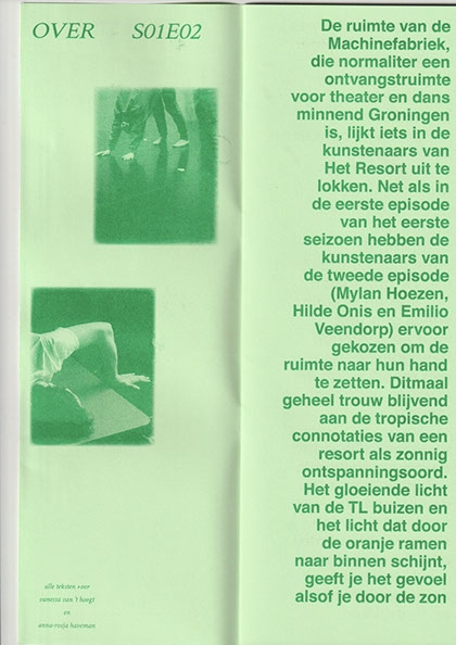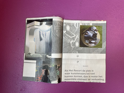 APRIL, 2023 / ISBN: 978-90-831386-9-5 / Pages: 60 / Size: 21x29.7cm / Edition: 100 / Fonts: Blister (by Maarten van Maanen), Letter Gothic STD / Print: Repro.nl / Design: Ellen de Haan / Writers: Anna-Rosja Haveman, Vanessa van 't Hoogt, Iulia-Irina Aionesi, Richtje Reinsma / Photos: Hache, Lisa Jasperina Bommerson, Sjoerd Knol, Tom van Huisstede, Claudia Moraru, Ellen de Haan and the artists / Self-published by het resort