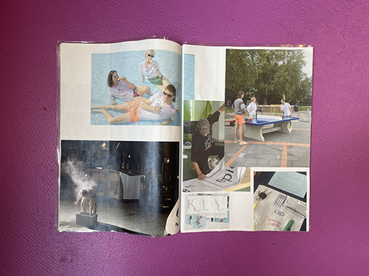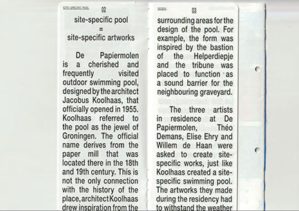 A publication about artists at a swimming pool including stickers (!) and a calender (!)