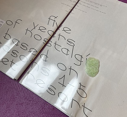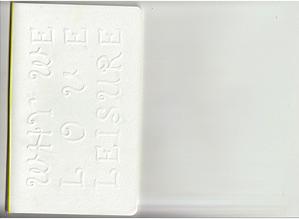 November, 2022 / ISBN: 9789083138619 / English / 58 pages / 13x21 cm / Edition of 50 / Risoprinted at Letterpress Workshop Academy Minerva, Groningen / Embossing by Drukkerij Douma, Dokkum / Hand-bound / Self-published by het resort / design: ellen de haan