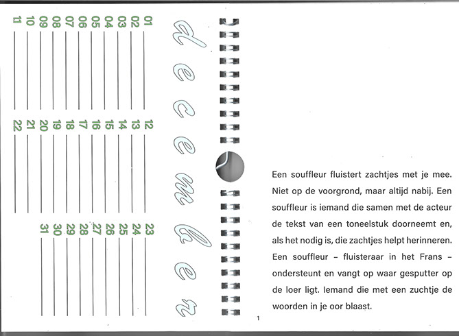 sep 2019 | size: 11x21 cm / pages: 36 (calender included) / print: digital B&W + color stickers / self-published by het resort / design: Ellen de Haan