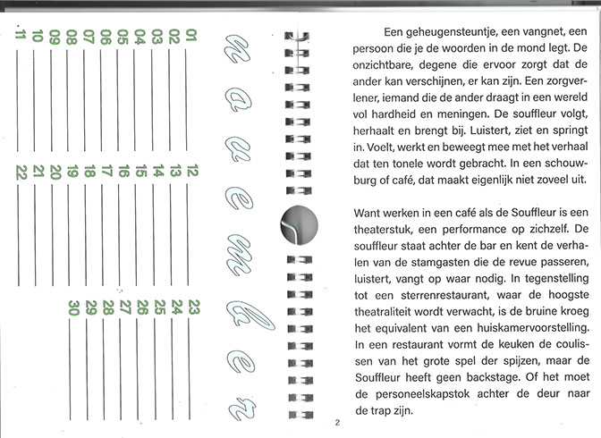 eng) This publication was developed during a residency and exhibition at De Souffleur. At the invitation of the resort, Adriënne van der Werf explored the aesthetics, function and social value of the brown pub. (text of the publication is in dutch)
