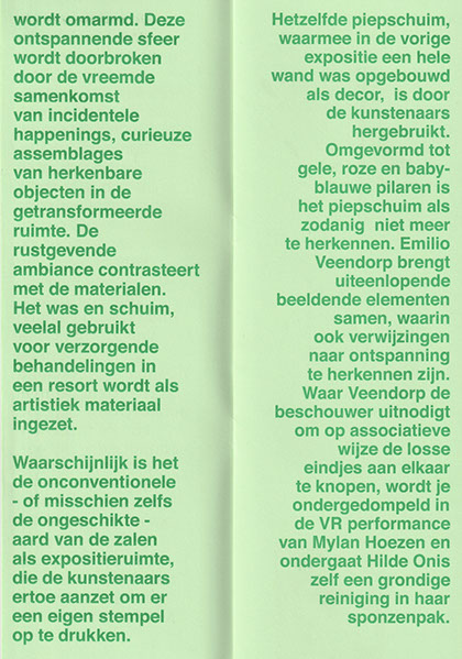 (...) "Anna-Rosja Haveman + Vanessa van 't Hoogt: "As directors you give the artists a lot of freedom. For instance, the titles are always chosen by the artists themselves. How do you interpret the exhibition title “Little Nostrum” chosen by the residents?"