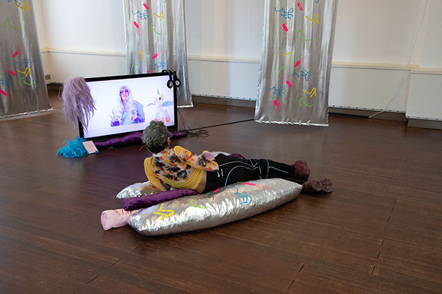 Clara Saito works with a palette of characters she imagines herself, allowing her to express critical (political) opinions to express critical (political) opinions. In her work 'How To Cure Bacterial Vaginosis' we see Lady Dada explaining the mysteries surrounding vaginal bacteria. Scientific facts surrounded by soft hugs. At the same time, the installation reminds us that the body will always rule us.
