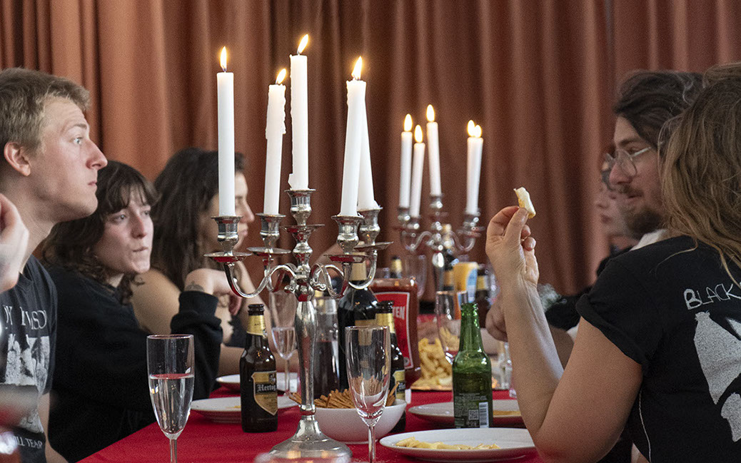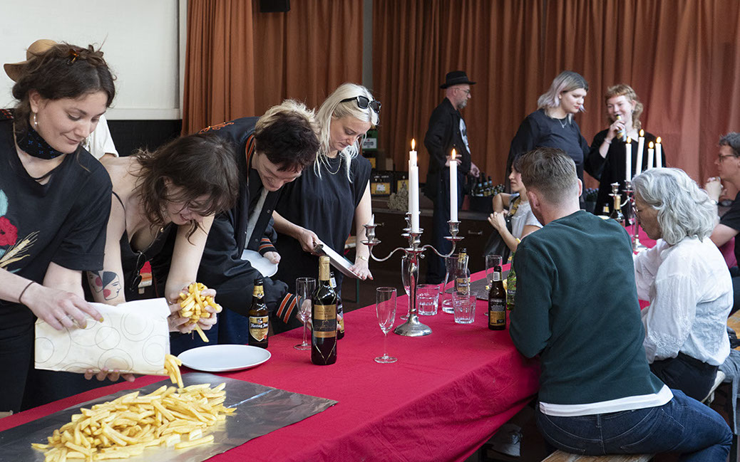 There is nothing so inevitable and elusive about life as death. No one is immortal and there comes a time for each of us to pass. With what sauce shall we be eaten?* is an exhibition at the Esserveld cemetery and former auditorium. Anna Reutinger, Isabel Cavenecia and Yair Callender developed new artworks during a five-week residency at the cemetery. They studied the cemetery and funerary culture - all the activities, structures and meanings surrounding death.