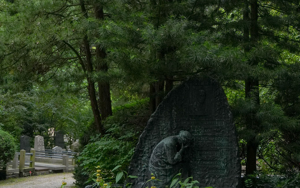 Esserveld Cemetery was established in 1924, when the Northern and Southern Cemetery reached full capacity. With its innovative concentric plan, a completely new park-like layout was introduced. The cemetery and its recognisable Amsterdam School-style entrance gate are national monuments.