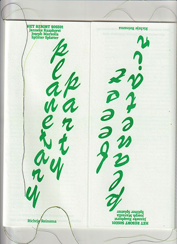 November, 2022 / ISBN: 9789083138626 / Dutch & English / 34 pages + extra's and stickers / 10,5x25 cm / Edition of 60 / Risoprinted at Letterpress Workshop Academy Minerva, Groningen / double Hand-bound / Self-published by het resort / design: ellen de haan