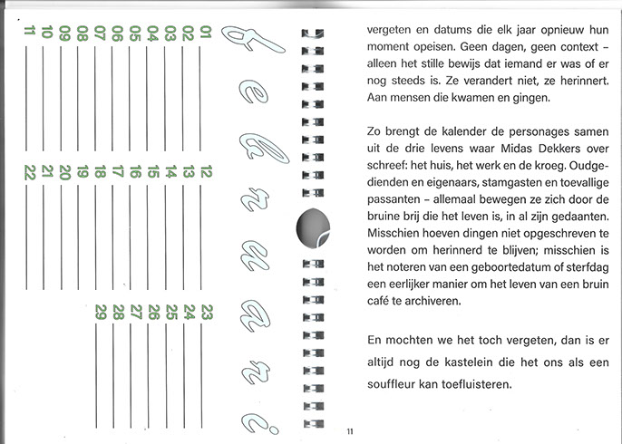 “In een straatbeeld dat steeds homogener wordt, is de bruine kroeg als een verjaardagskalender op het toilet. Ze hangt er al jaren, vergeeld aan de randen, met namen die soms al zijn vergeten en datums die elk jaar opnieuw hun moment opeisen. Geen dagen, geen context – alleen het stille bewijs dat iemand er was of er nog steeds is. Ze verandert niet, ze herinnert. Aan mensen die kwamen en gingen.”
