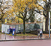 This year the midseason program took place at the Tschumi pavilion. The recently graduated artists Jochem van den Wijngaard (FMI, painting), Klaudija Ylaite (Academie Minerva, fine arts) and Vanina Tsvetkova (FMI, MADTech) created works based on their views of public space in different parts of the city and a overview at het Tschumipaviljoen. Anna-Fleuri Wolters (Minerva Academy, design) conceived and created all the expressions.