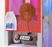 De deuren gaan open, we kunnen naar binnen. We zien voorbijgangers. Zij zien ons naar binnen lopen, maar toch bekruipt ons het gevoel van isolatie. We voelen ons veilig, alsof we gedeeltelijk onzichtbaar zijn. De lucht wordt grijs van kleur, regen begint op het glazen plafond te gieten. We kijken omhoog, het lijkt een waterval. Anna Fleuri maakt portretten van de groep.