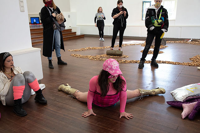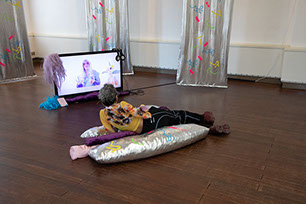 The exhibition "What Do You Think An Aquarium Is Made For, Is It Just A Container For The Soul?" is a mix of video and installations, with a focus on dance, ecosystems and femininity/gender.