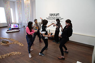 Her work investigates the politics of the body, movement, voice- the corporeality, through the production of experiences. These experiences often allude to imaginative and speculative fiction. Her research centers around the female voice and the creation of ecosystems. Her work is necessarily and consciously in a dialogical practice with the intersectional feminist discourse.
