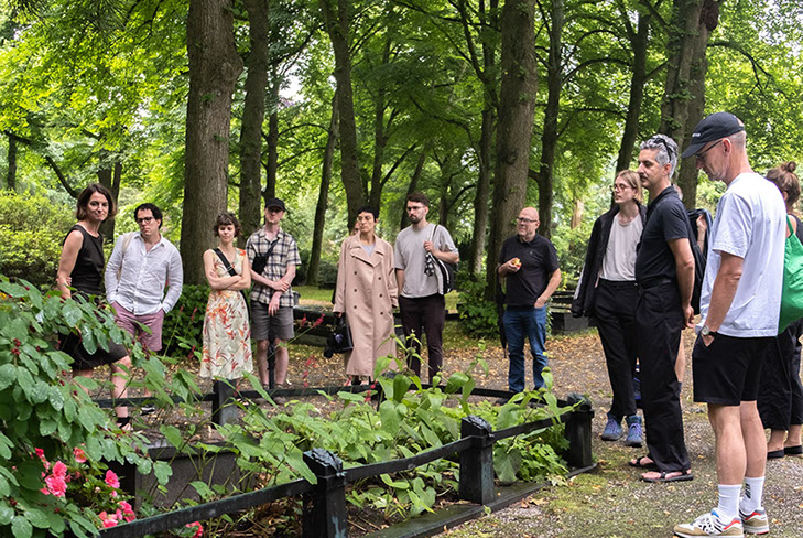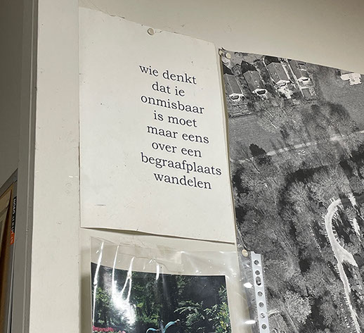 What symbols and rituals surround death? What stories are buried at Esserveld? And what are daily routines in a cemetery? For five weeks, the artists will stay at Esserveld, set up studios in the former auditorium and be shown around by caretaker, who is responsible for the day-to-day running of the cemetery, the so-called green, grey and black.