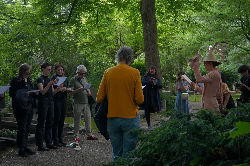 There is nothing so inevitable and elusive about life as death. No one is immortal and there comes a time for each of us to pass. With what sauce shall we be eaten?* is an exhibition at the Esserveld cemetery and former auditorium. Anna Reutinger, Isabel Cavenecia and Yair Callender developed new artworks during a five-week residency at the cemetery. They studied the cemetery and funerary culture - all the activities, structures and meanings surrounding death.
