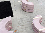 Het resort asked Philippe Wolthuis (S01E01) en Maaike Knibbe (S01E01) to create settings to present the zines and prints in a different way then a market and offer a different kind of terrace. Outside is inspired by construction sites and inside by sushi bars.
